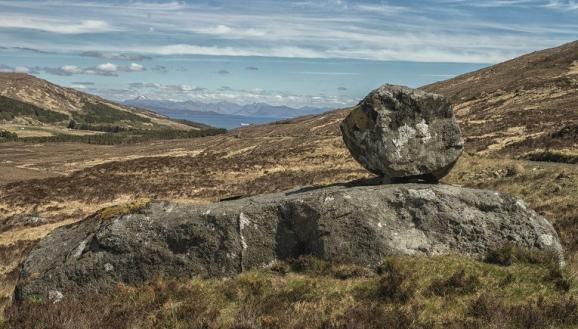 Feature photo: Looking towards Scresort Bay, Rum. It is thought that this rock may have been rolled into its present position as a protest against the Clearances. © Sylvia Beaton
